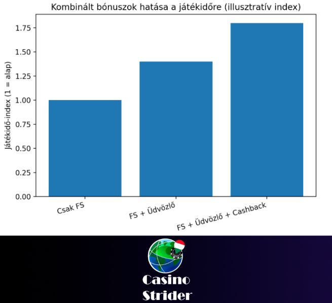Az alábbi ábrán egy egyszerű játékidő-index segítségével mutatom meg, miért éri meg rétegezni a bónuszokat (illusztratív példa).